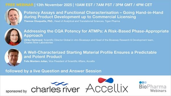 13th November 2025 | 10:00am EST / 7:00am PST / 3:00pm GMT / 4:00pm CET | Therese Choquette, PhD. Head of Analytical and Translational Sciences at Tigen Pharma, Ulrike Herbrand, Scientific Director Global in vitro Bioassays and Head of the Bioassay Research & Development team at Charles River Laboratories and Felix Montero Julian, Vice President of Scientific Affairs at Accellix |BOOK FREE SEAT FOR THIS WEBINAR