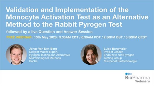 13th May 2026 | 9:30am EDT / 6:30am PDT / 2:30pm BST / 3:30pm CEST | Jonas Van Den Berg, Subject Matter Expert, Pyrogen Testing and Alternative Microbiological Methods at Roche, Luisa Burgmaier, Project Leader, Endotoxin and Pyrogen Testing Group at Microcoat Biotechnologie |BOOK FREE SEAT FOR THIS WEBINAR